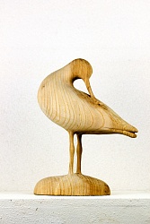 Jaap Deelder (1952) maakt beelden in hout en steen, waarbij vogels een centrale rol spelen. Hij wil dat zijn beelden zoveel mogelijk voor zich spreken en streeft naar ornithologische juistheid. "Het moet kloppen; maten, houdingen en verhoudingen moeten juist zijn". Jaap Deelder gebruikt verschillende steensoorten en vele houtsoorten. Details weglaten en een zekere mate van stilering kunnen om technische of artistieke redenen een belangrijke rol spelen, maar mogen de natuurlijke vorm geen geweld aandoen, vindt hij. 'Een vogel is al zo mooi, daar moet je niets aan toevoegen of veranderen'.