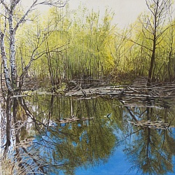 ‘Schilderen is me het liefst, de ultieme kunstvorm. Omdat je vanuit het niets hele werelden kunt creëren, helemaal je eigen ding doet en enkel jij het hoe en wat, alsook het eindresultaat bepaalt. Mijn werk is figuratief. Niet (hyper)realistisch, want het materiaal blijft zichtbaar, het schilderen een factor. Eerst zet ik het schilderij aan de hand van studies en foto’s met potlood op en begin vervolgens met schilderen: de eerste laag, bijna als een aquarel zo dun, gevolgd door meerdere iets meer dekkende lagen. De vertaling van het onderwerp in het medium levert een aantal beeldende problemen op: plaatsing in het vlak, de organisatie van de ruimte, kleur, licht en vorm, het spanningsveld tussen verf en voorstelling, vereenvoudiging en detaillering. Dit hoort bij het schilderen. De beleving en studies van het onderwerp, de vertaling in het schilderij en het schilderen als proces spelen alle drie een rol.’